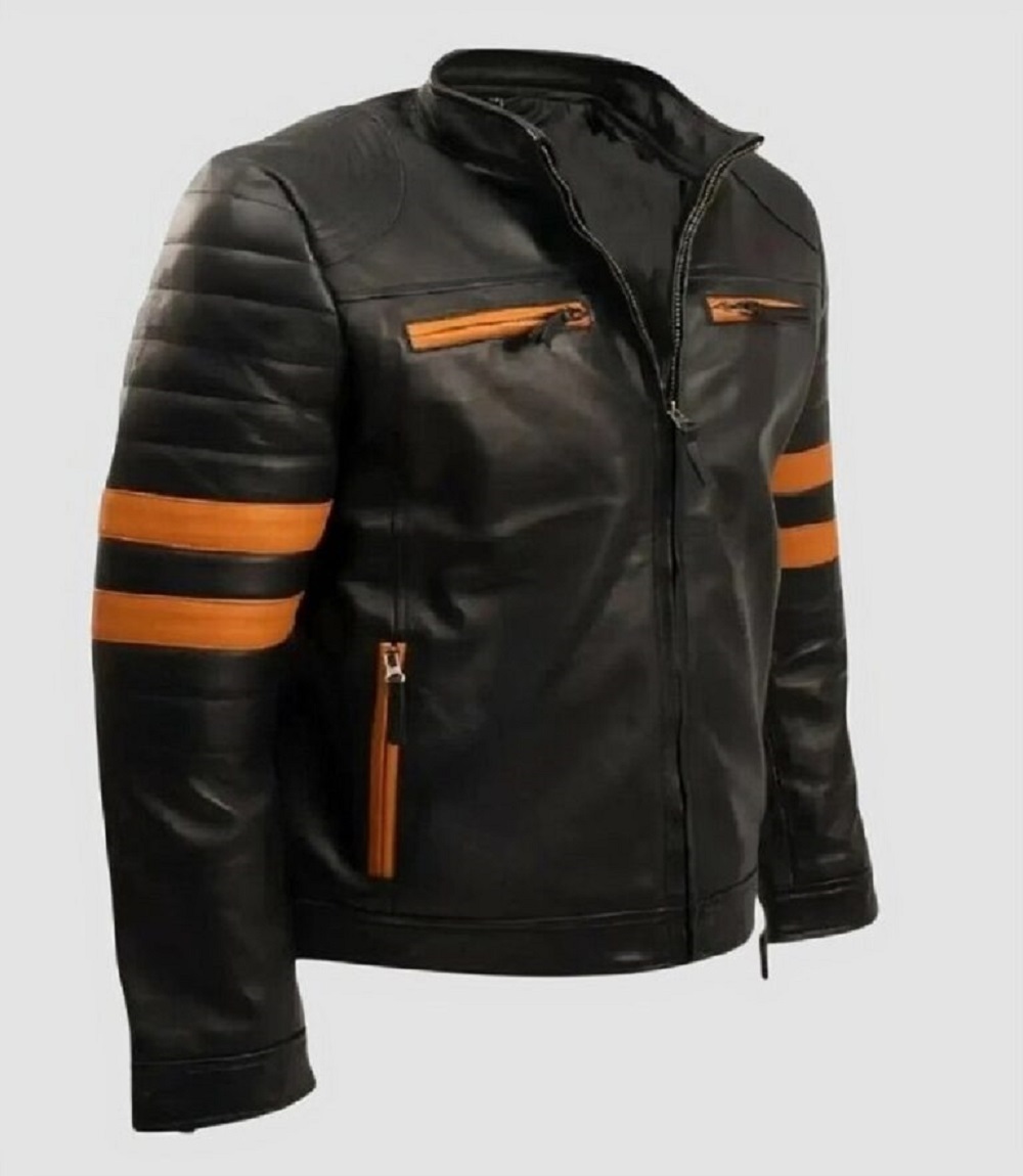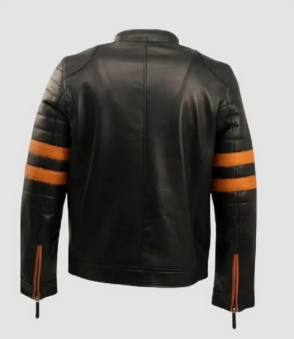 Mens Black Leather Jacket Vigilante Orange Stripe