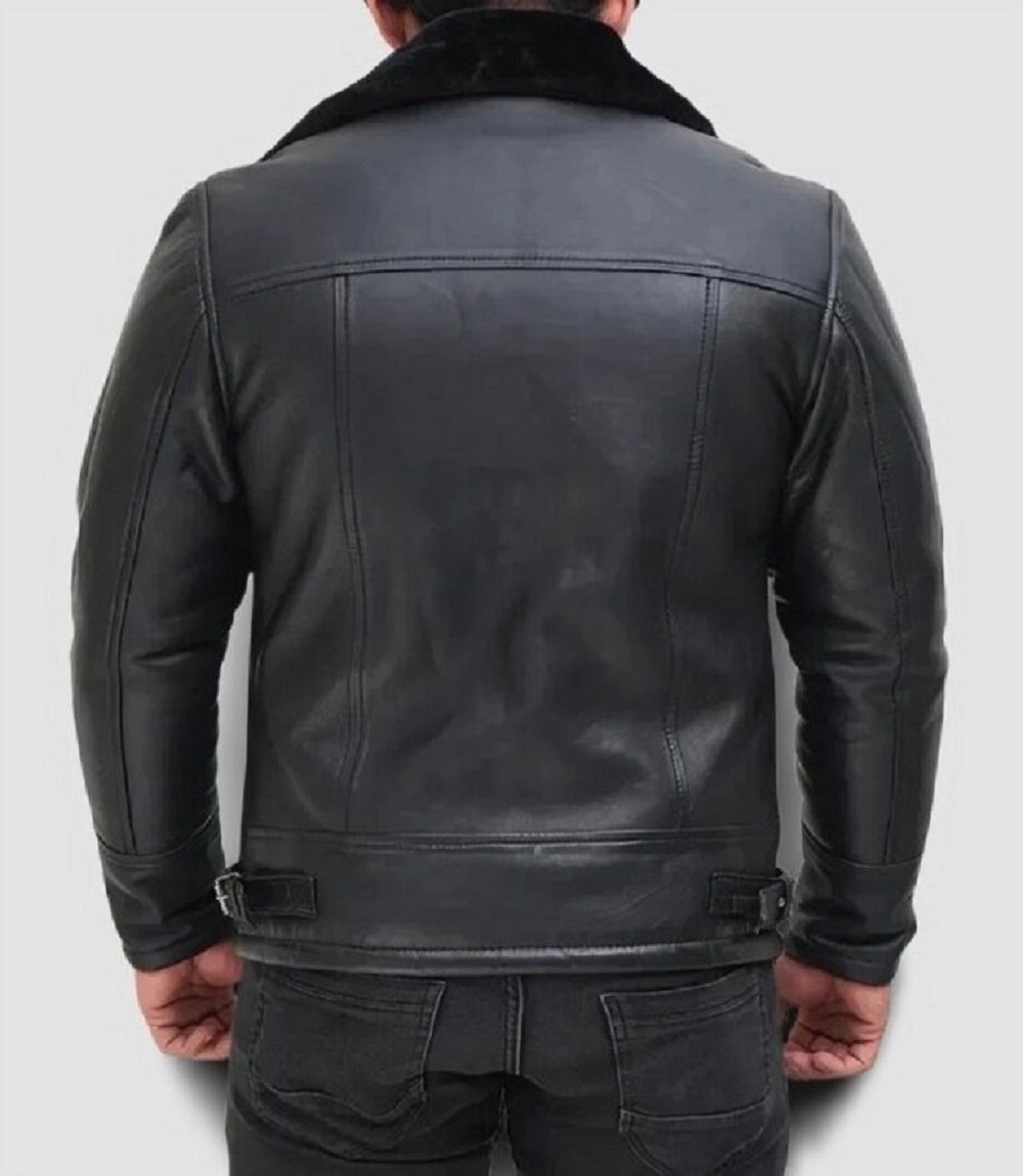 Mens Black Shearling Bomber Leather Jacket