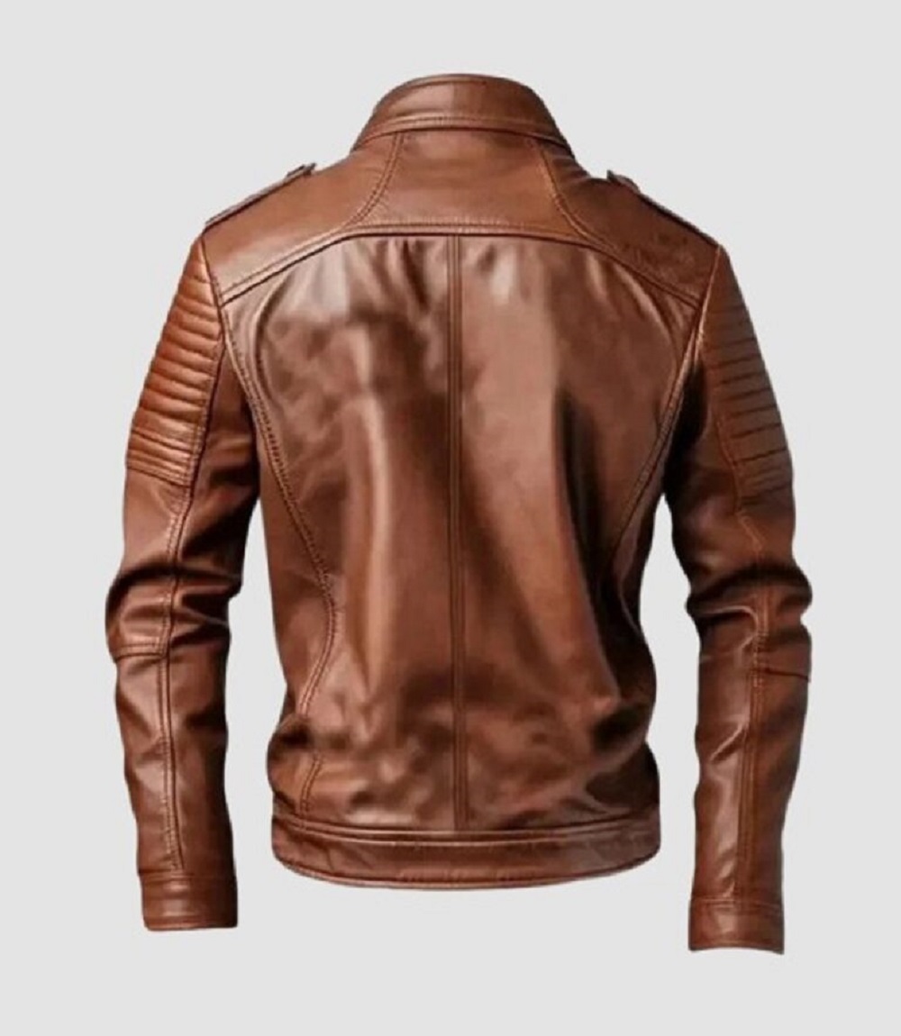 Mens Brown Leather Jacket Quilted Shoulders