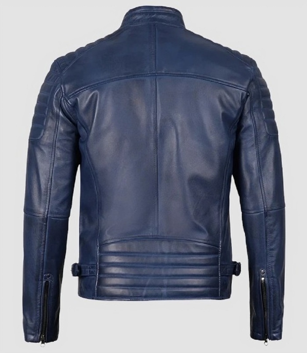 Mens Waxed Blue Leather Jacket Indigo Biker Heritage Racer Style